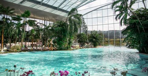 Ob volle Action in der Rutschenlandschaft, Regeneration des Körpers in einem der Mineralien-Pools oder Wellness pur in der Saunawelt – hier ist für jeden etwas dabei! Lass den Alltag hinter dir und genieße deinen Thermenurlaub in vollen Zügen mit einer Übernachtung in einem Premiumhotel.